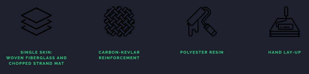 Construcție simplă, dar robustă din fibră de sticlă (GRP), cu armare suplimentară din carbon-kevlar pentru o rigiditate suplimentară. Sunt ușor de manevrat, întreținut și reparat.