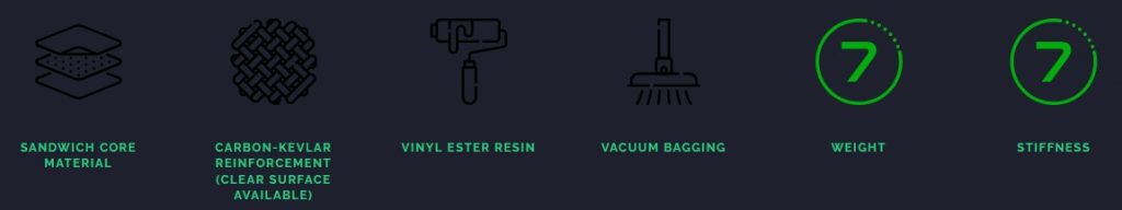 Bărcile noastre compozite sunt realizate în mai multe construcții (layups). Le-am proiectat pentru a satisface nevoile cât mai multor utilizatori de agrement – de la cluburi și pasionați până la sportivi de top.