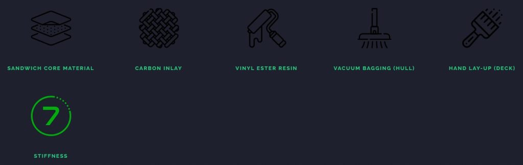 Coca și/sau puntea (piesele) din carbon transparent sunt disponibile în construcții EXTRA și ULTRA.